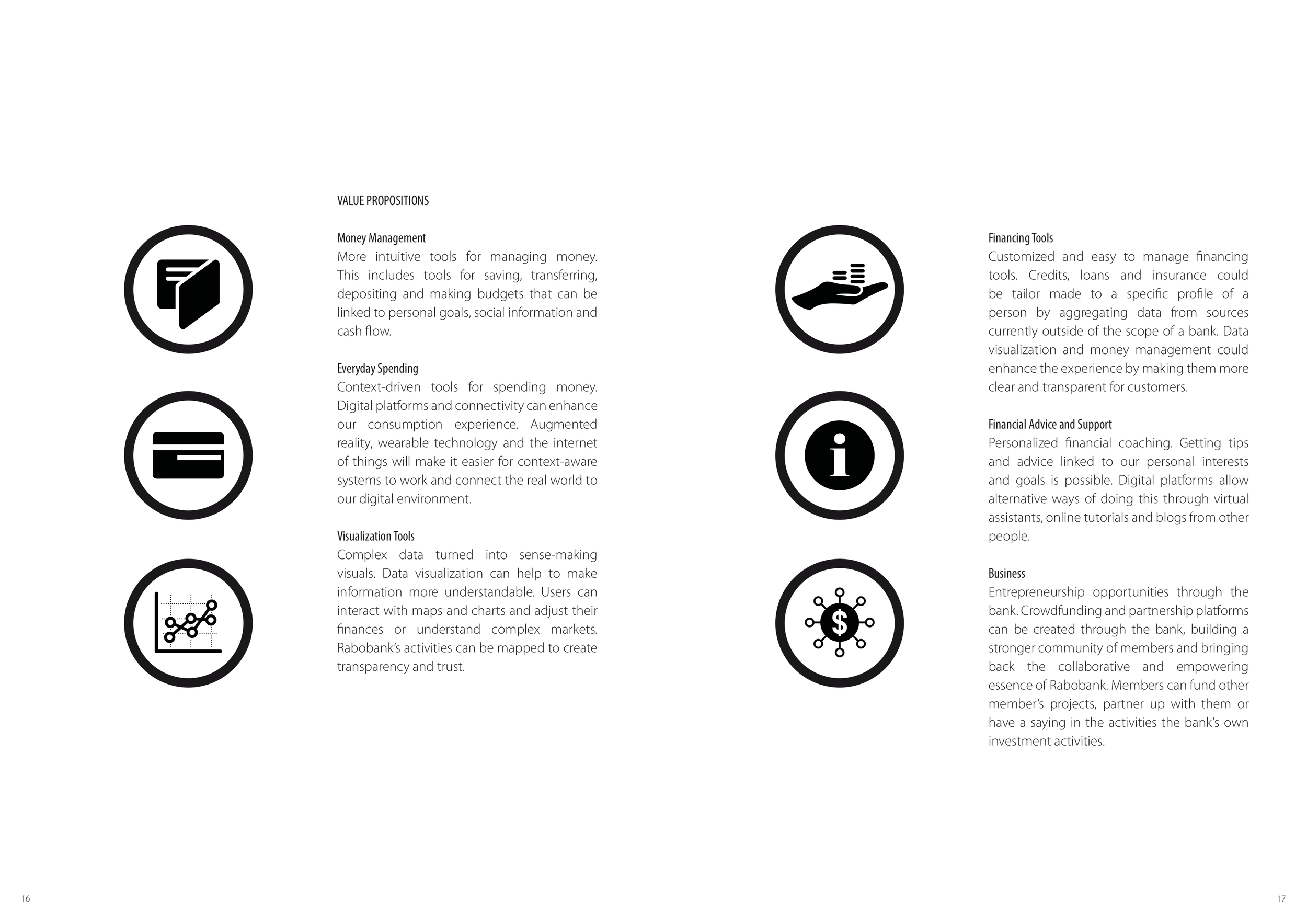 The challenge was to envision how Rabobank could leverage big data to create new value propositions, while aligning with its brand identity and addressing growing user concerns about data control. The goal: define a future-proof, ethically sound product–service ecosystem that customers could trust.